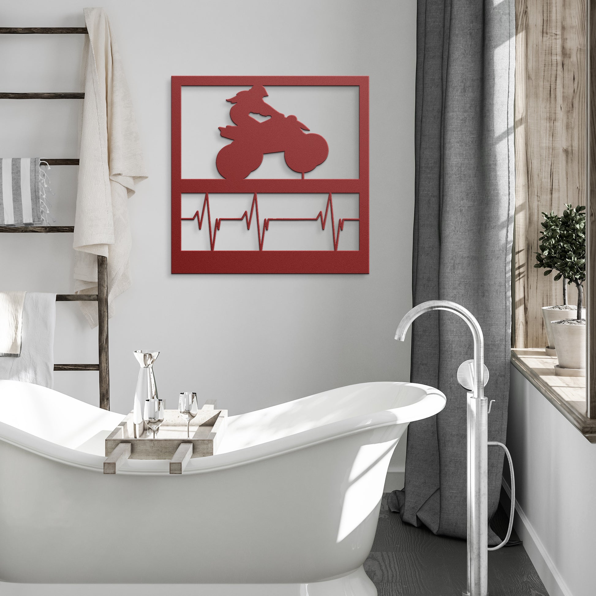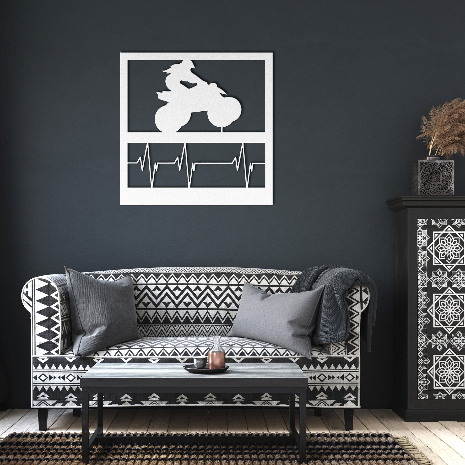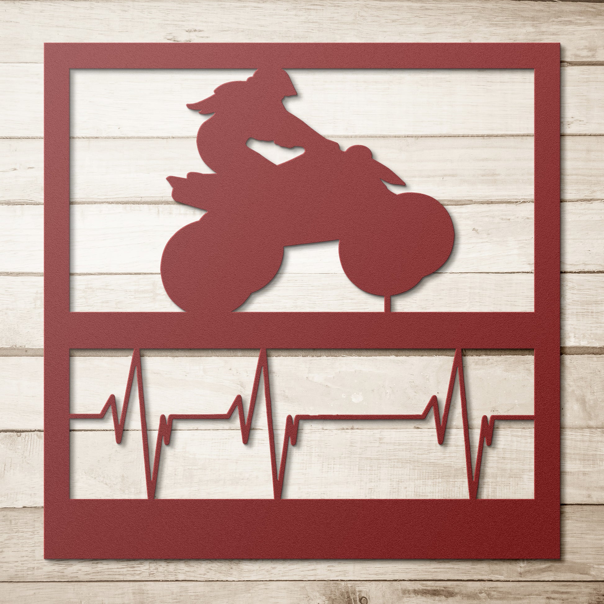 Fuel your passion for adventure with the "4 Wheeler Heartbeat Girl" Hypnotic Metal Wall Art, featuring a spirited young woman on a high-powered 4 wheeler, poised over a pulsing heartbeat signal. This striking design symbolizes the rush and exhilaration of off-road riding, connecting with every enthusiast's core. Perfect for any space that craves a touch of excitement.